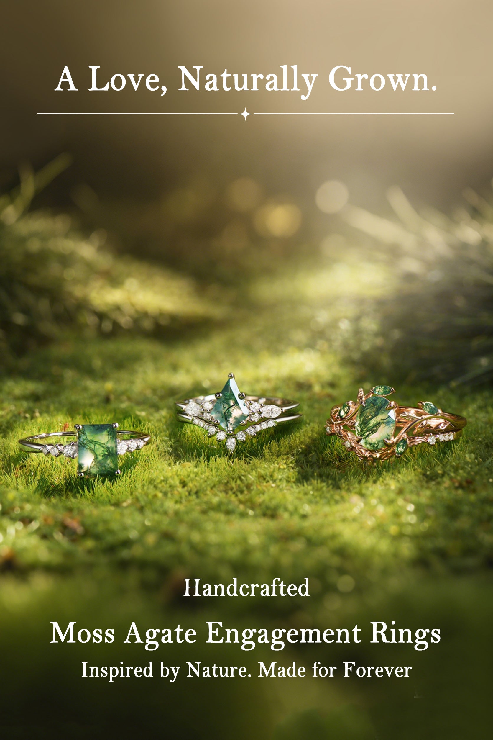 Shop moss agate rings – unique, nature-inspired jewelry with timeless beauty.
