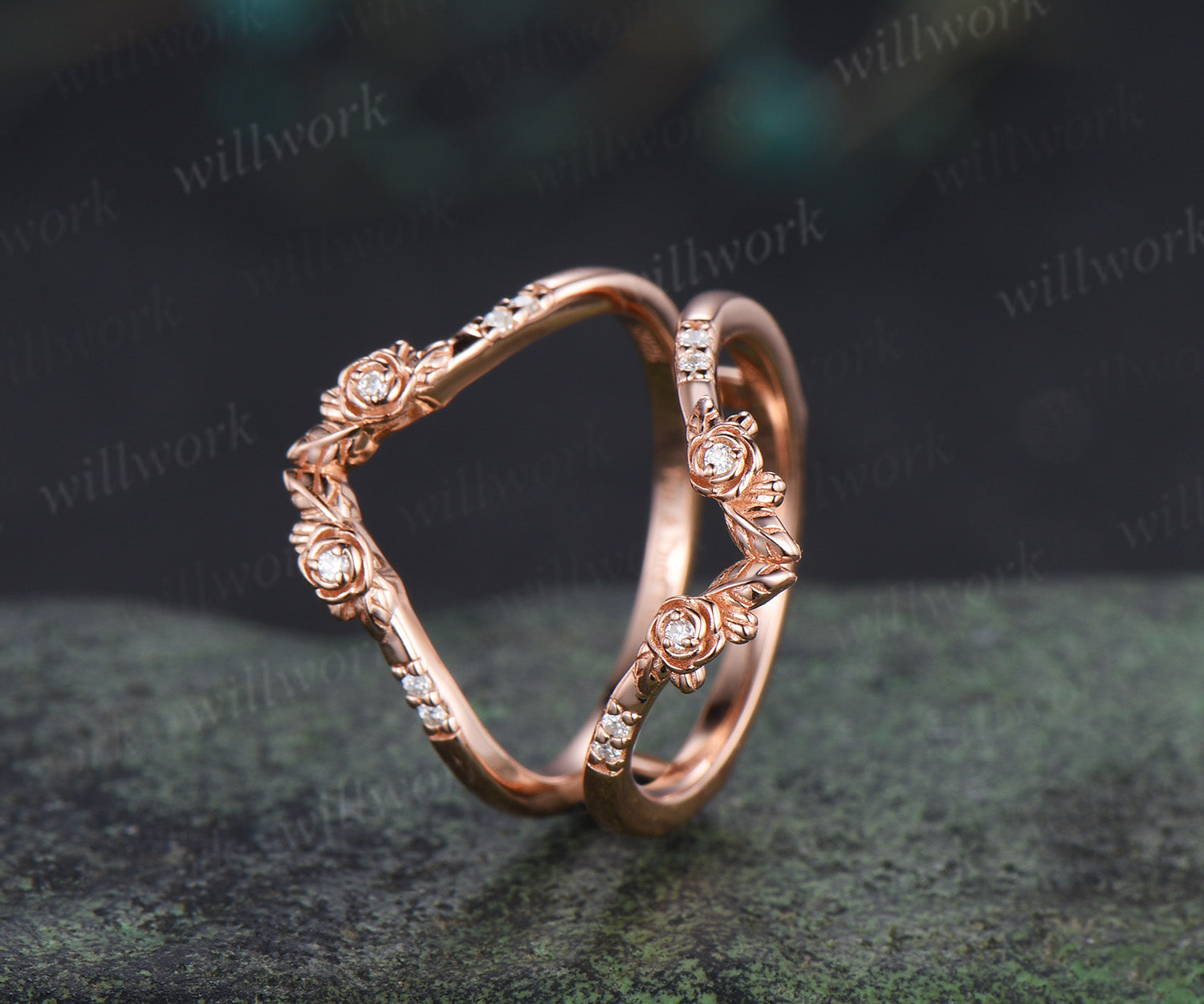 ***Gracefully contoured with blooming floral details and sculpted leaf lines, this dainty moissanite wedding band features a refined double layered design. Sparkling accents trace the curves, creating an elegant enhancer or stacking ring inspired by nature—perfect for weddings, anniversaries, or everyday romance.***- Metal: Solid gold(10K/14K/18K white/yellow/rose gold),925 sterling silver,platinum available