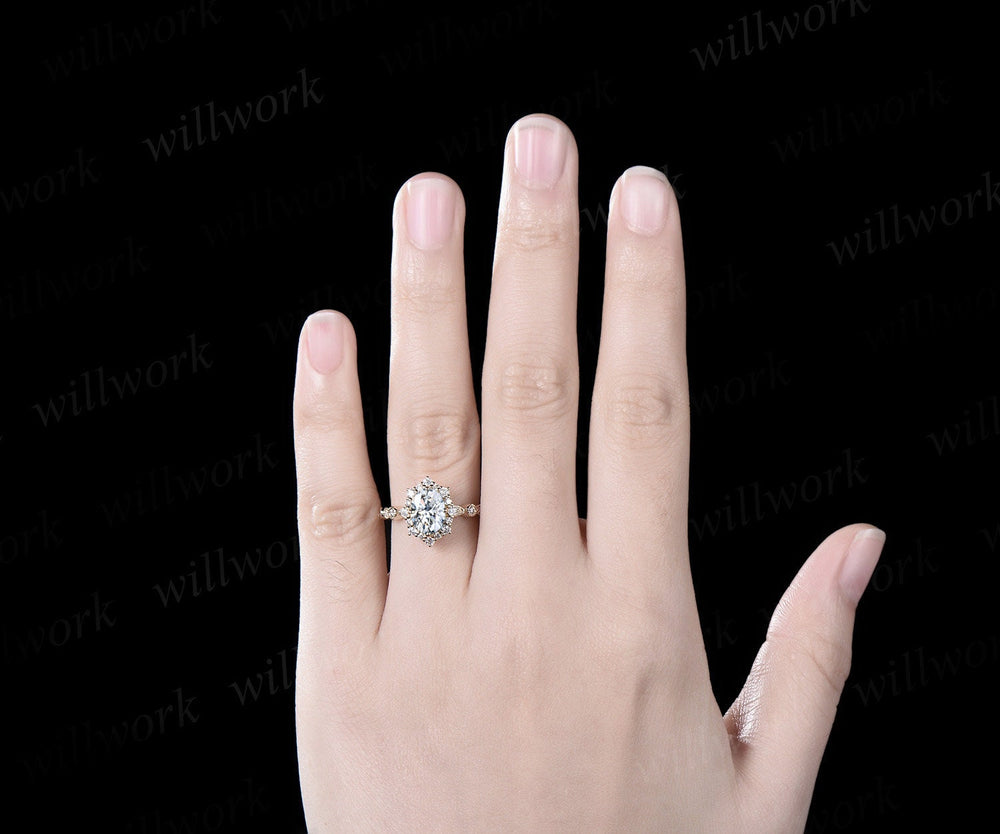 Vintage oval cut moissanite engagement ring 14k yellow gold milgrain bezel halo diamond unique wedding promise anniversary ring women