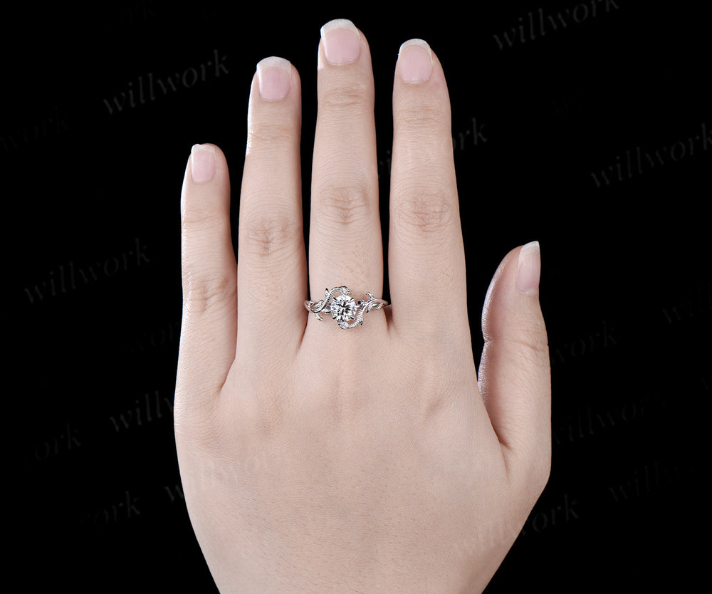 Vintage round cut IGI lab grown diamond Engagement Ring 14k White Gold leaf Double Snake diamond ring women nature inspired promise ring her
