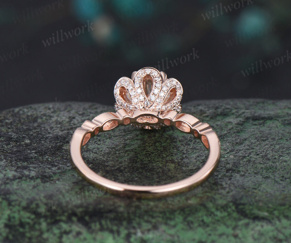 Vintage round cut moissanite engagement ring 6 prong rose gold double halo diamond wedding promise ring women jewelry