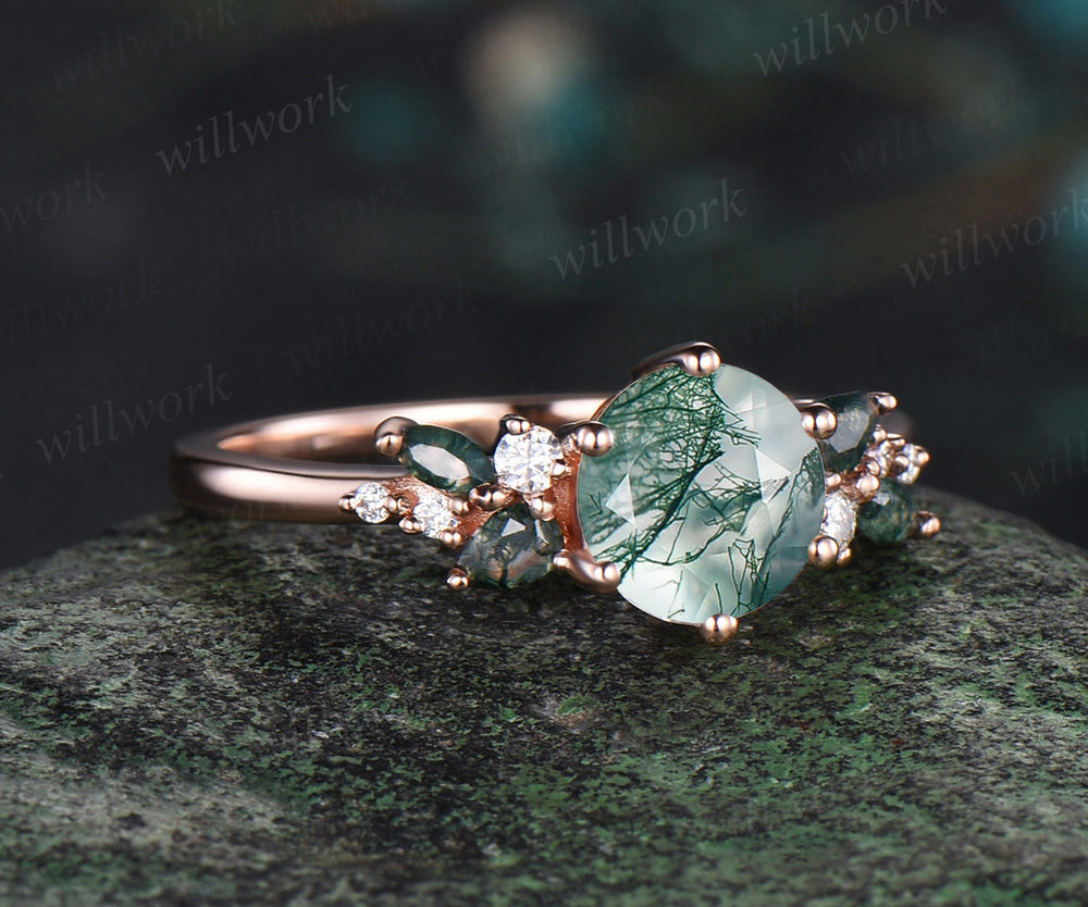 1ct Round cut green moss agate engagement ring rose gold 6 prong snowdrift diamond anniversary promise ring women 1ct Round cut green moss agate engagement ring rose gold 6 prong snowdrift diamond anniversary promise ring women $283.00