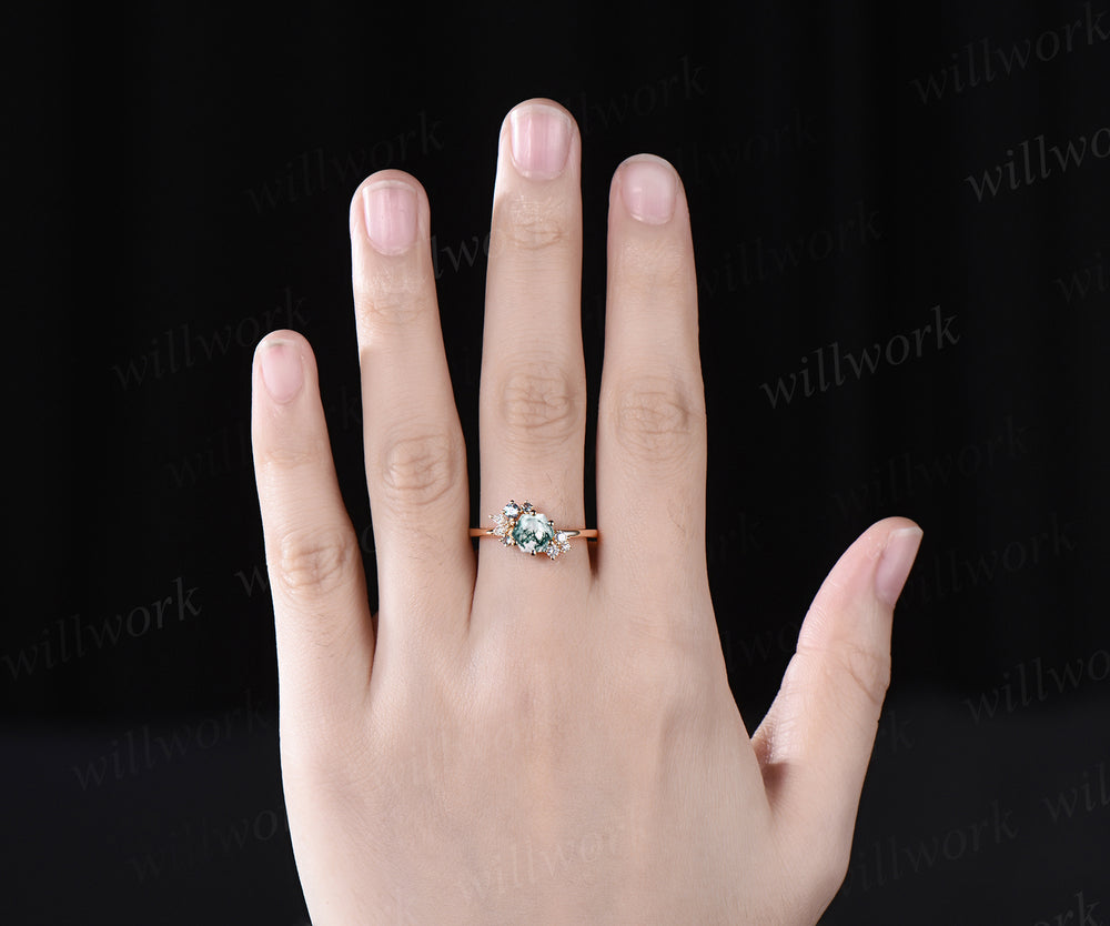 Hexagon cut moss agate ring yellow gold vintage unique cluster engagement ring 6 prong alexandrite diamond wedding bridal ring jewelry