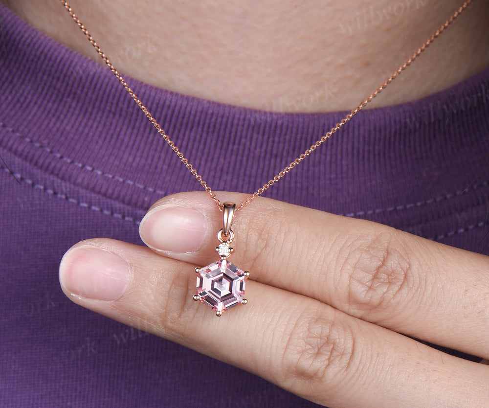 Hexagon Padparadscha sapphire necklace minimalist pink sapphire moissanite pendant necklace birthday anniversary gifts