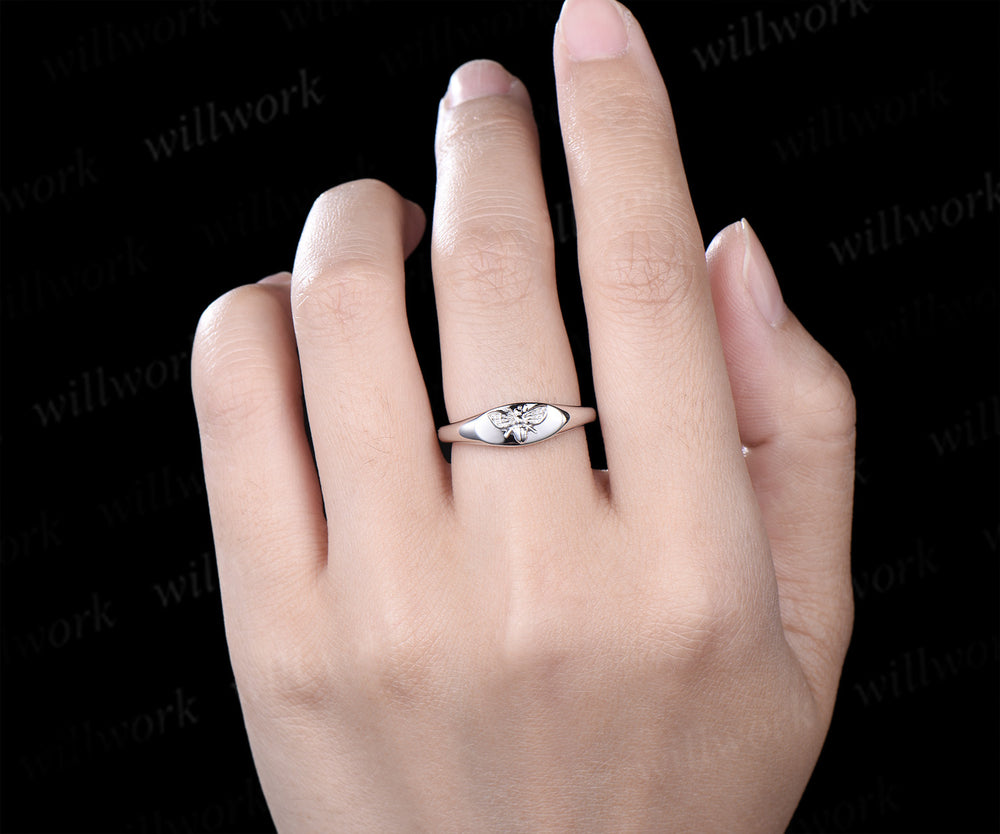 Honey bee signet ring solid 14k white gold ring bumblebee statement ring comfort fit jewelry gifts