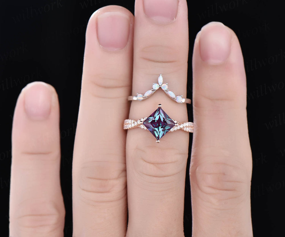 Only 1pcs Marquise opal wedding ring matching band solid 14k rose gold unique vintage ring curved special jewelry
