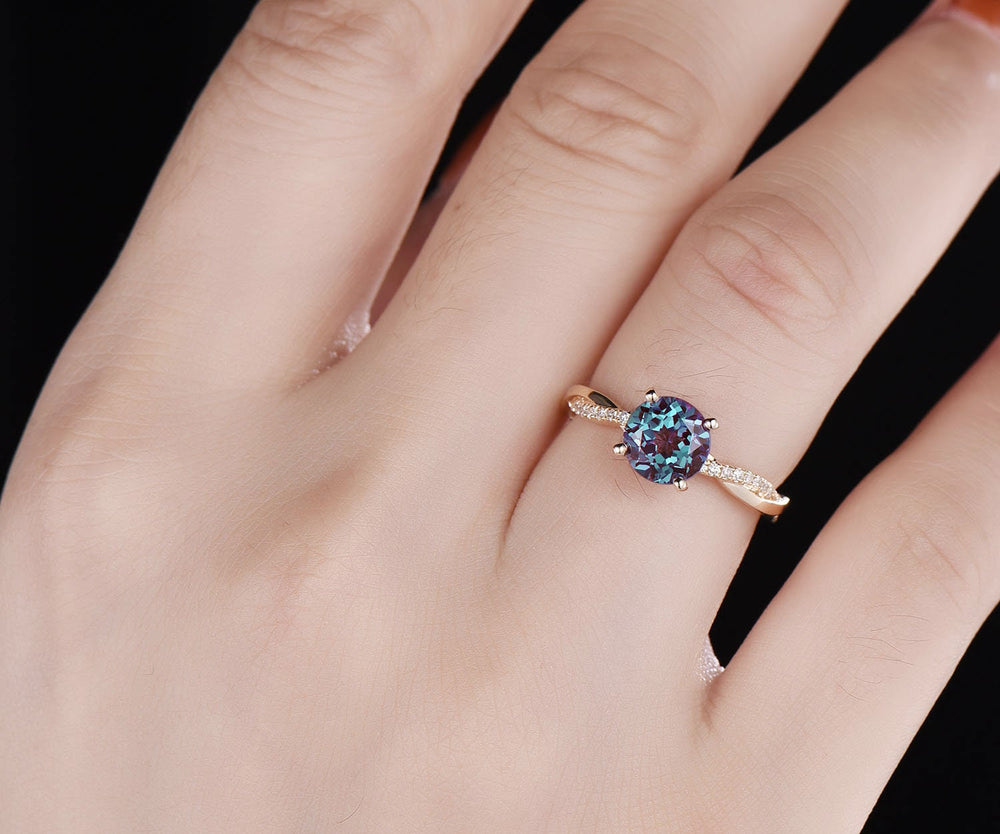 - Main Stone: 7mm round cut Lab treated Alexandrite