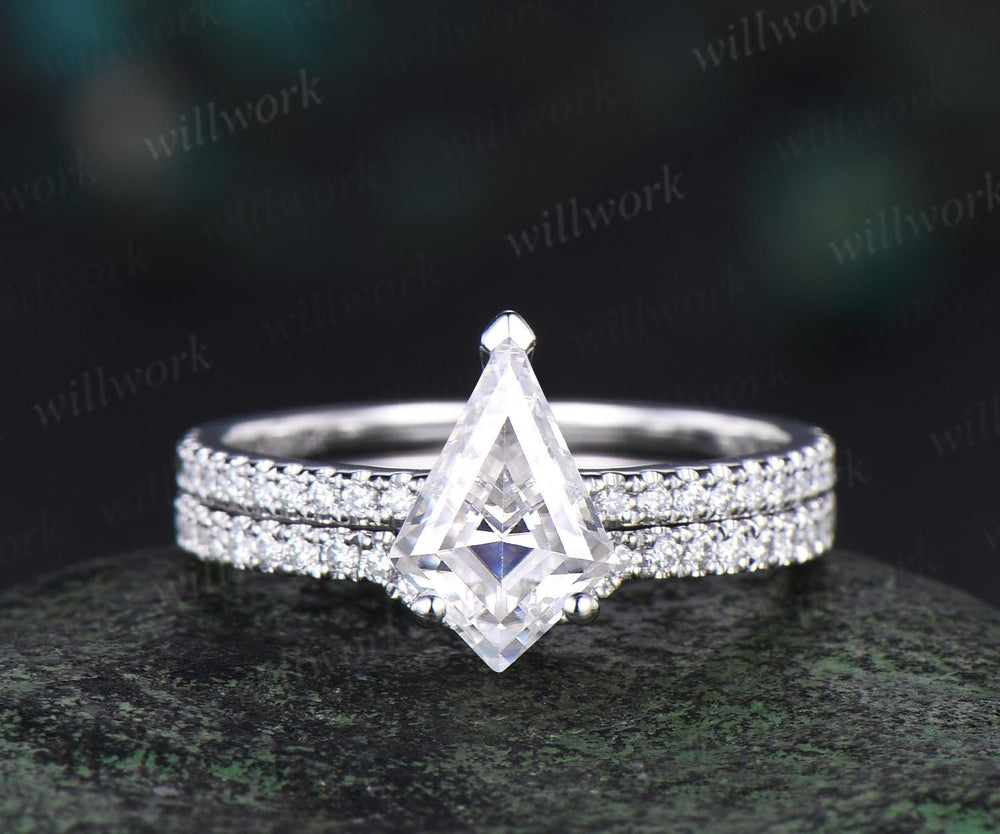 V prong 1ct kite cut moissanite engagement ring set dainty half eternity hidden halo diamond ring vintage unique promise ring set women