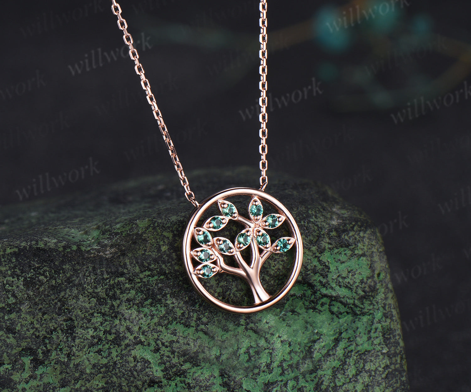 Round Emerald Family Tree Pendant Necklace Leaf Shape Milgrain Green Gemstone Pendant Jewelry Round Emerald Family Tree Pendant Necklace Leaf Shape Milgrain Green Gemstone Pendant Jewelry $256.00
