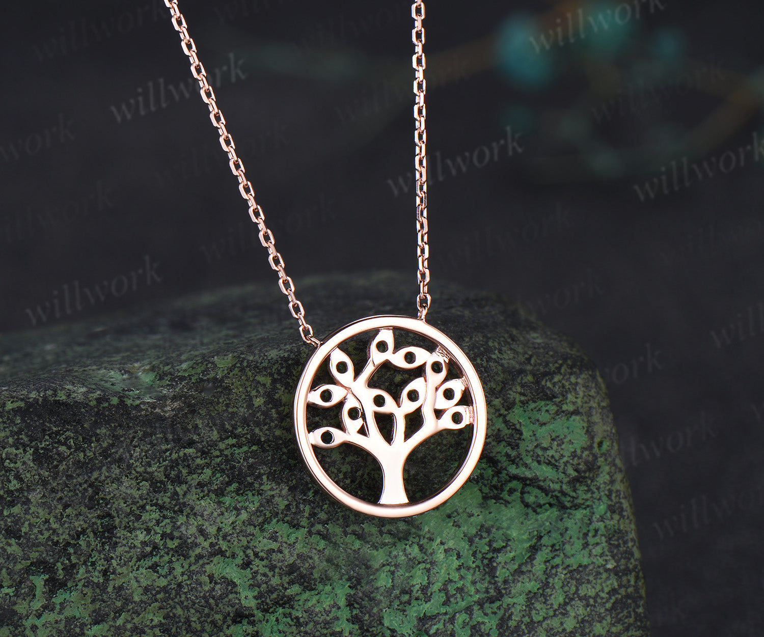 ***Symbolizing growth, love, and connection, this round emerald family tree pendant is framed by graceful leaf motifs and delicate milgrain details. The vivid green gemstone glows with natural elegance, making this meaningful necklace a beautiful everyday talisman or heartfelt gift for someone special.***- Metal: Solid gold(9K/14K/18K white/yellow/rose gold),925 sterling silver, platinum available