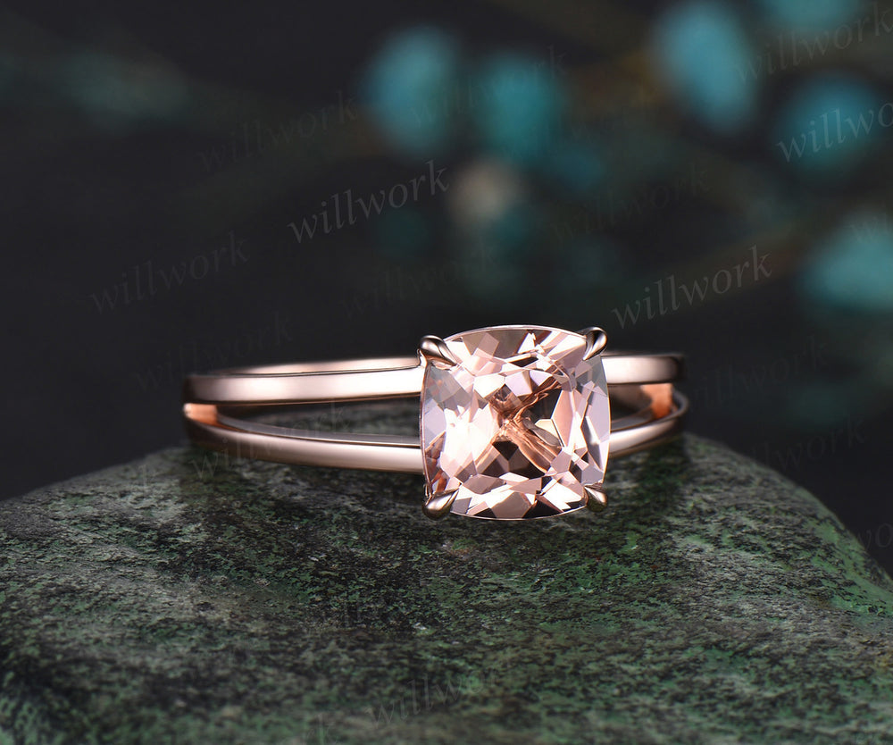 14k rose gold Cushion Cut Morganite Engagement Ring pink jewelry Unique Ring For Her