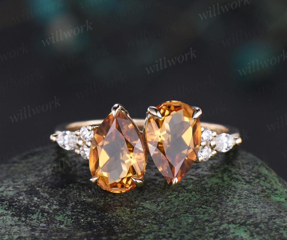 Teardrop pear cut yellow citrine engagement ring solid 14k yellow gold retro unique diamond crystal ring women anniversary gift Teardrop pear cut yellow citrine engagement ring solid 14k yellow gold retro unique diamond crystal ring women anniversary gift $279.00