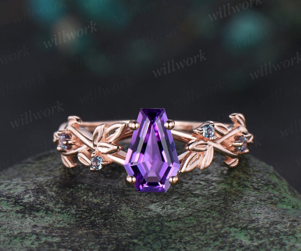 Coffin cut amethyst engagement ring vintage five stone alexandrite leaf infinity kite cut ring vine branch anniversary ring gift