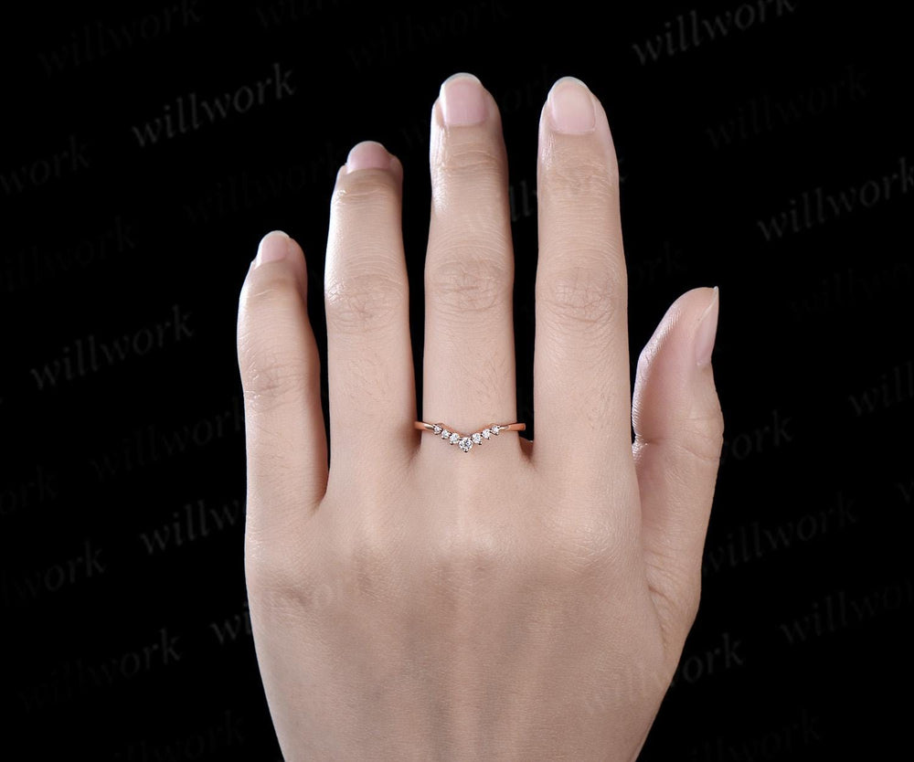 Curved moissanite wedding band solid 14k rose gold stacking matching diamond wedding ring band women anniversary ring gift