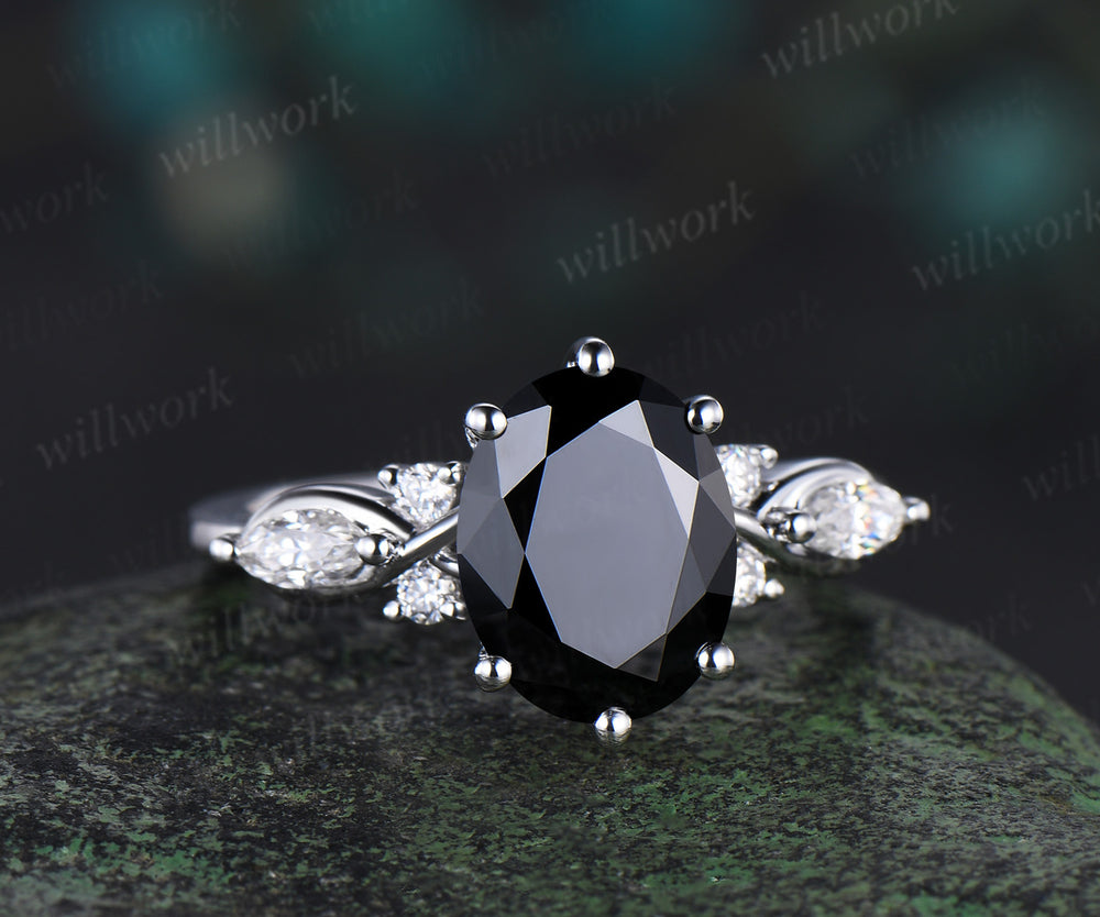 2CT Oval Cut Black Moissanite Ring Vintage Moissanite engagement ring Flawless moissanite ring for women marquise diamond anniversary ring