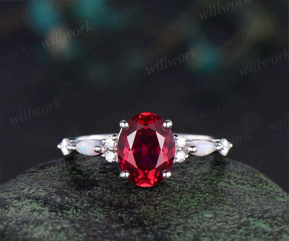 2ct oval cut red ruby engagement ring white gold opal diamond wedding ring women July birthstone ring women jewelry 2ct oval cut red ruby engagement ring white gold opal diamond wedding ring women July birthstone ring women jewelry $281.00