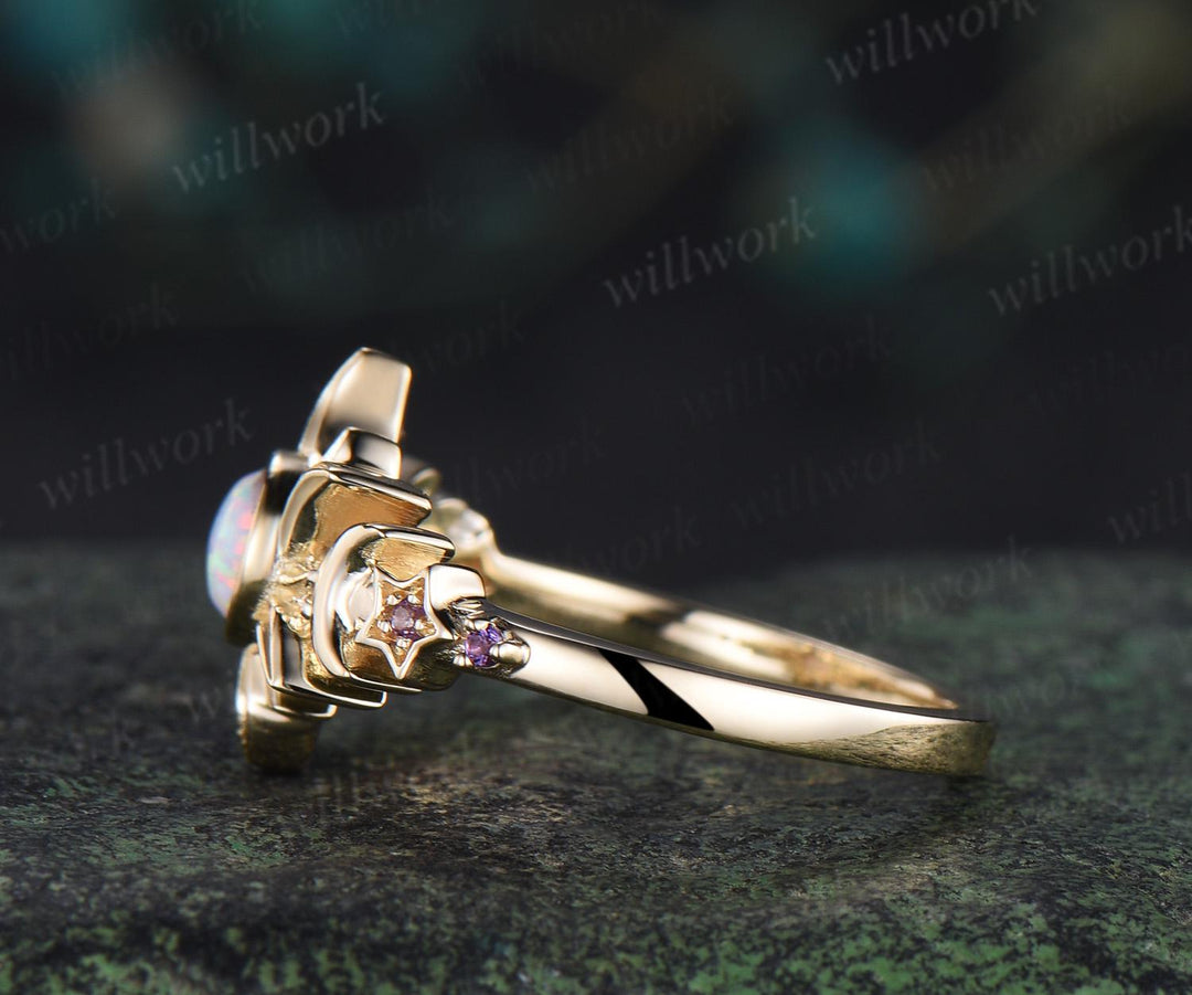 5mm round bezel opal ring vintage sun moon star five stone engagement ring solid 14k yellow gold amethyst wedding ring women gift 5mm round bezel opal ring vintage sun moon star five stone engagement ring solid 14k yellow gold amethyst wedding ring women gift $280.00