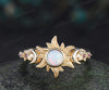 5mm round bezel opal ring vintage sun moon star five stone engagement ring solid 14k yellow gold amethyst wedding ring women gift
