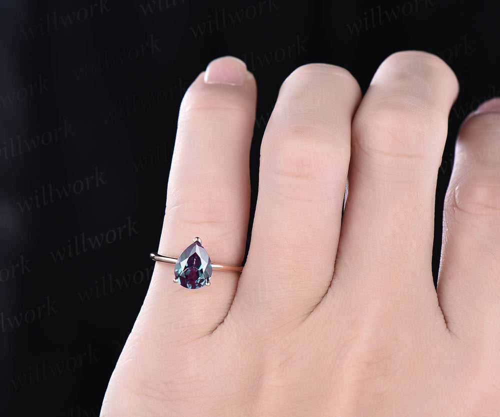 7x9mm pear Alexandrite solitaire ring solid rose gold ring Alexandrite engagement ring anniversary birthday gift wedding bridal ring jewelry