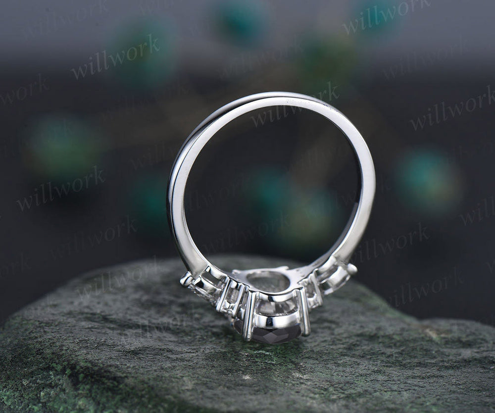 Oval Cut Salt and Pepper Diamond Engagement Ring Marquise Engagement Ring Women Diamond Ring Vintage Promise Ring