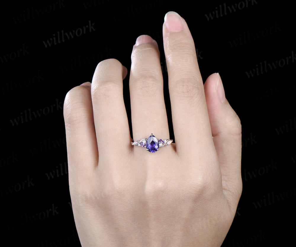 Unique purple sapphire engagement ring marquise amethyst opal bridal wedding ring jewelry gifts for women