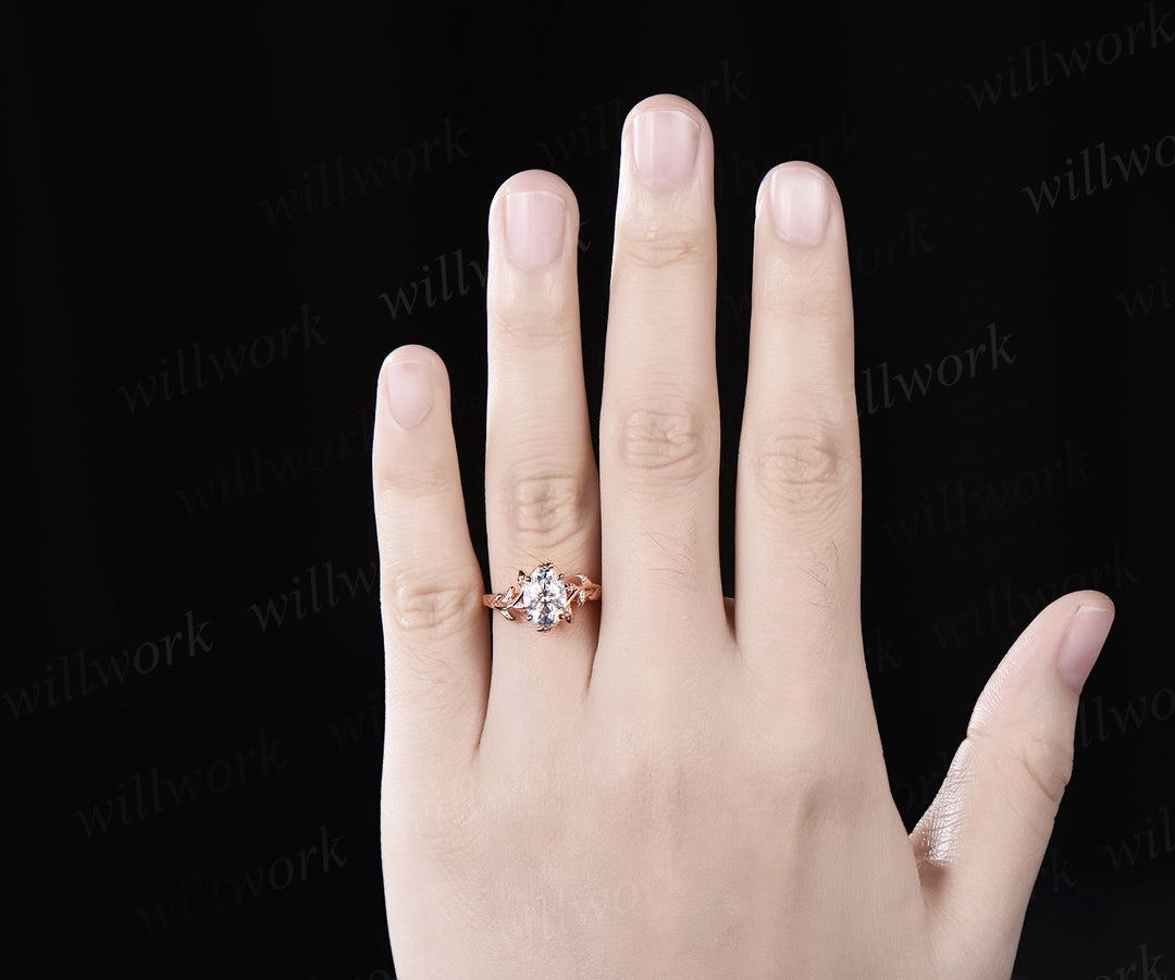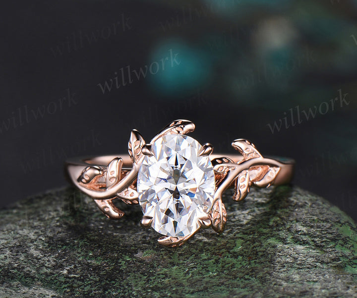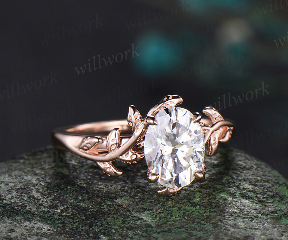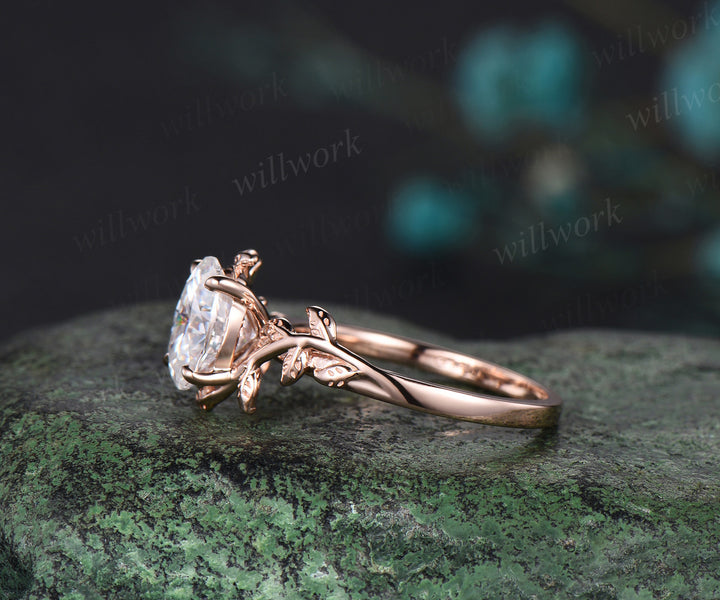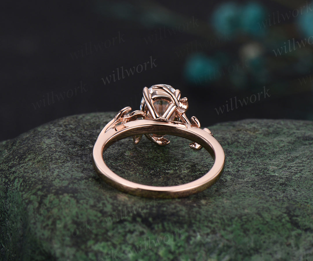 Unique vintage moissanite engagement ring leaf branch art deco dainty solitaire rose gold ring promise bridal weddring ring jewelry