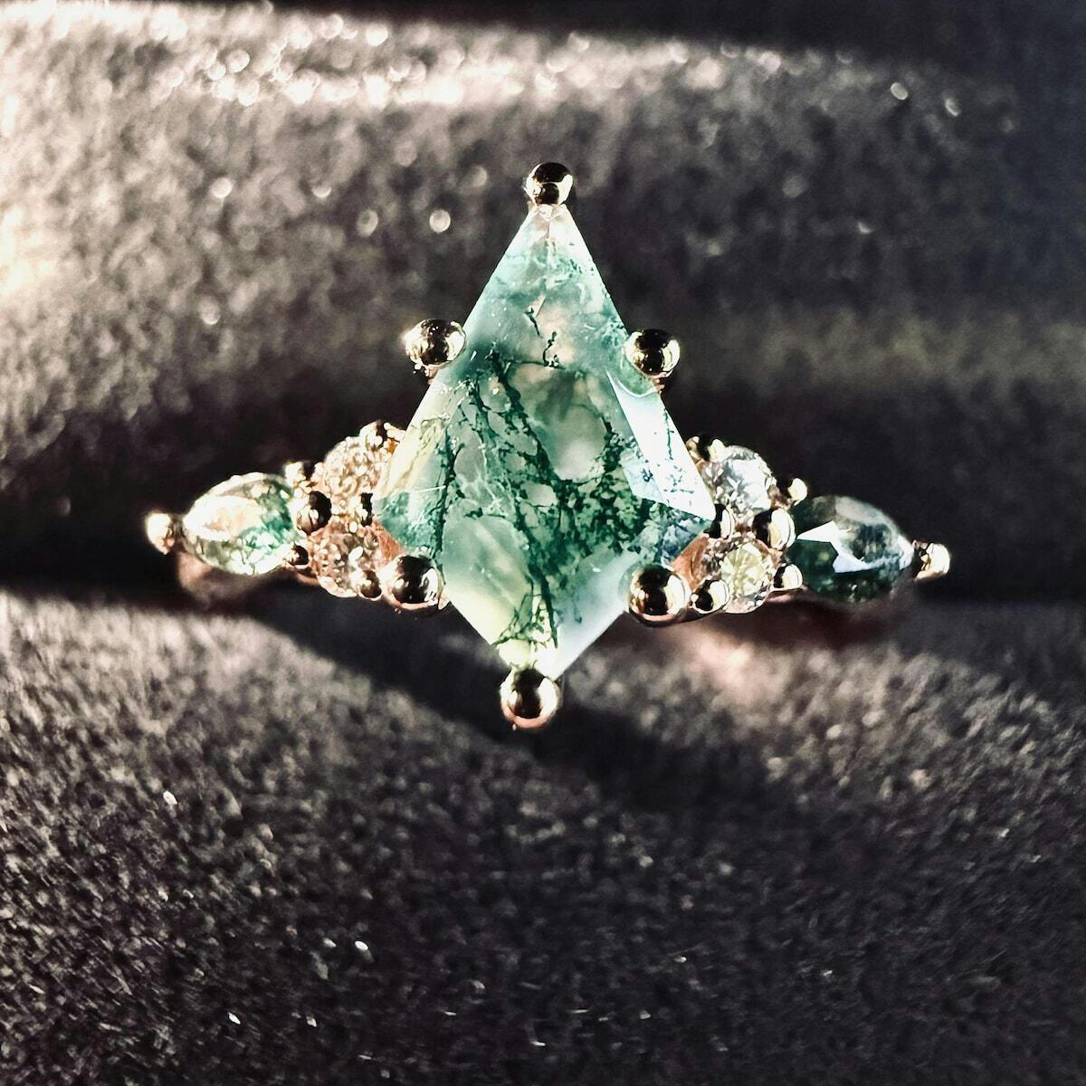 Kite cut green moss agate ring rose gold 6 prong art deco unique engagement ring women dainty diamond ring Personalized anniversary gift Kite cut green moss agate ring rose gold 6 prong art deco unique engagement ring women dainty diamond ring Personalized anniversary gift $330.00