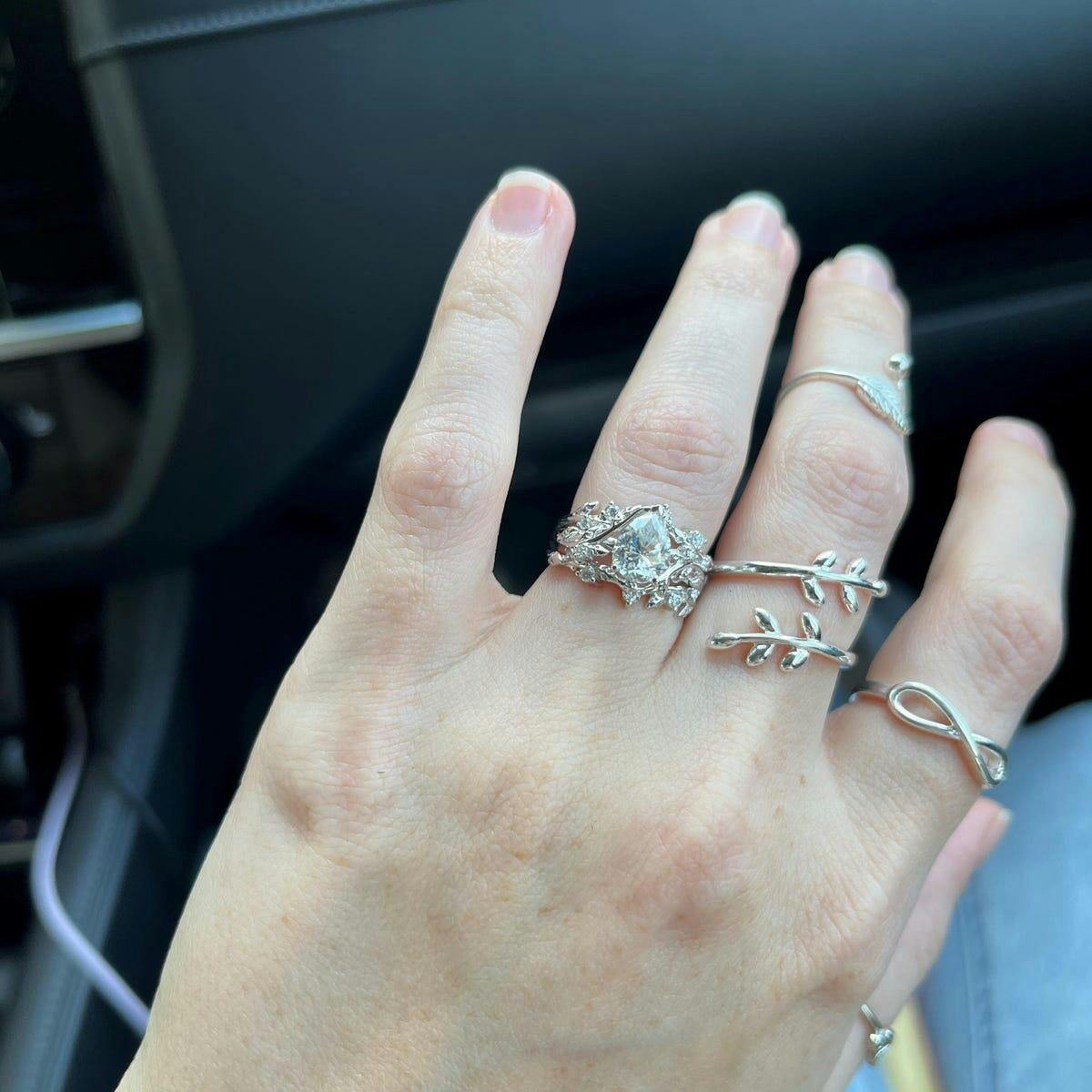 Leaf Pear shaped moissanite engagement ring set solid 14k white gold three stone diamond art deco ring women unique wedding ring set Leaf Pear shaped moissanite engagement ring set solid 14k white gold three stone diamond art deco ring women unique wedding ring set $274.00