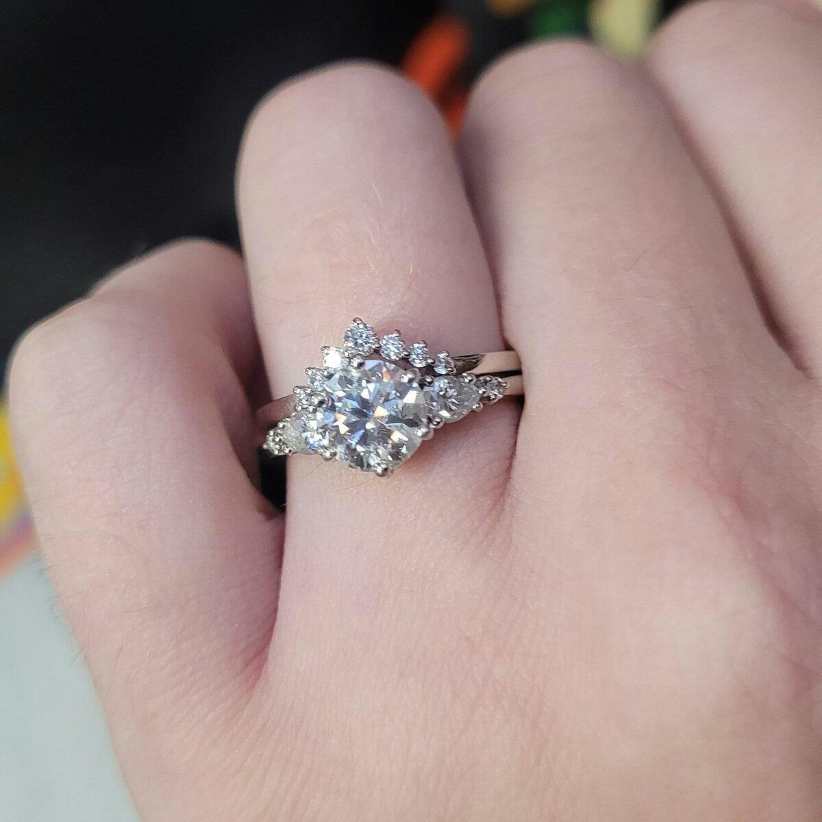 Round cut moissanite ring vintage moissanite engagement ring set five stone rose gold unique engagement ring promise bridal wedding ring set