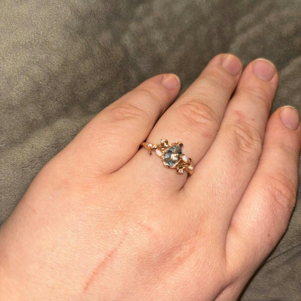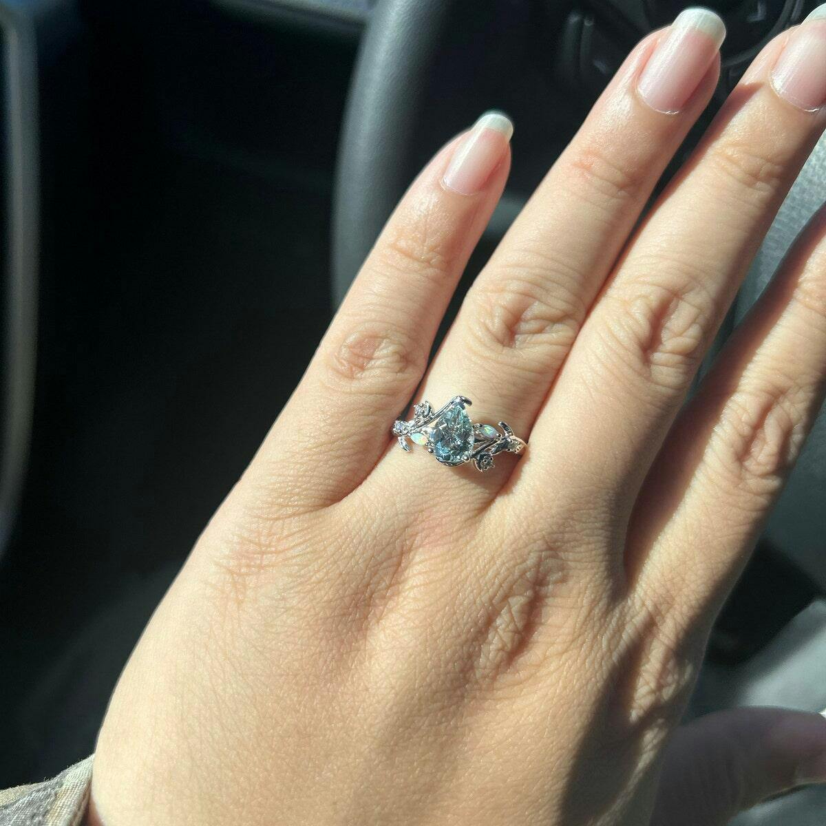 Vintage pear shaped aquamarine engagement ring white gold heart leaf moon nature inspired diamond bridal wedding ring set women jewelry gift