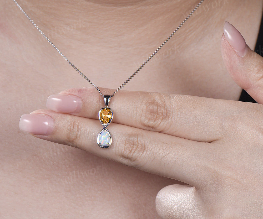 Pear cut citrine opal necklace infinity pendant toi et moi birthstone charm couple BFF necklace
