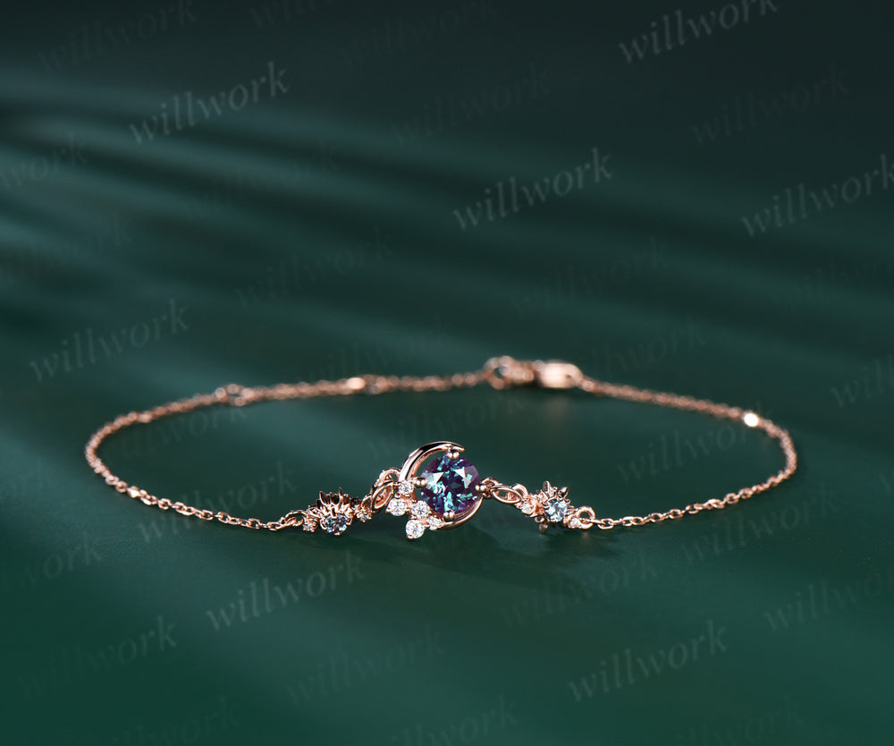 Moon Sun Bracelet 5mm Round Cut Color-Change Alexandrite Charm Bracelets No Fading Adjustable Chain Wrist Bracelet for Women rose gold