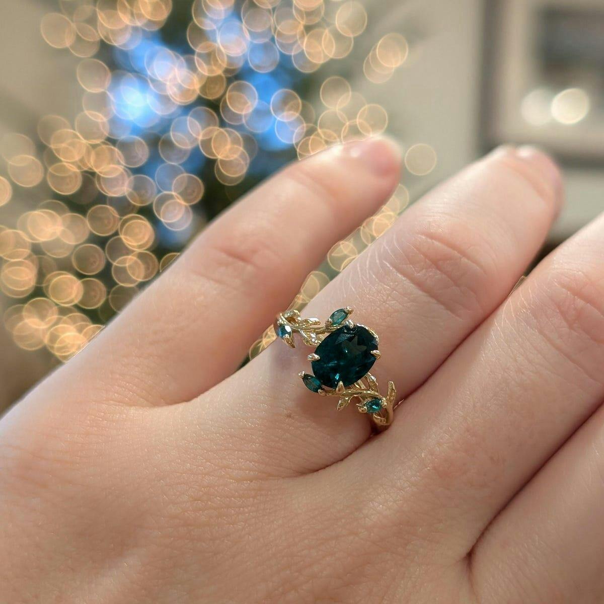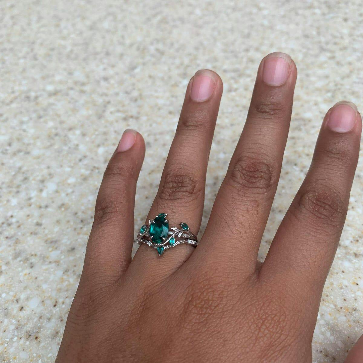 Vintage oval cut green emerald engagement ring rose gold cluster leaf nature inspired moissanite bridal promise wedding ring set women
