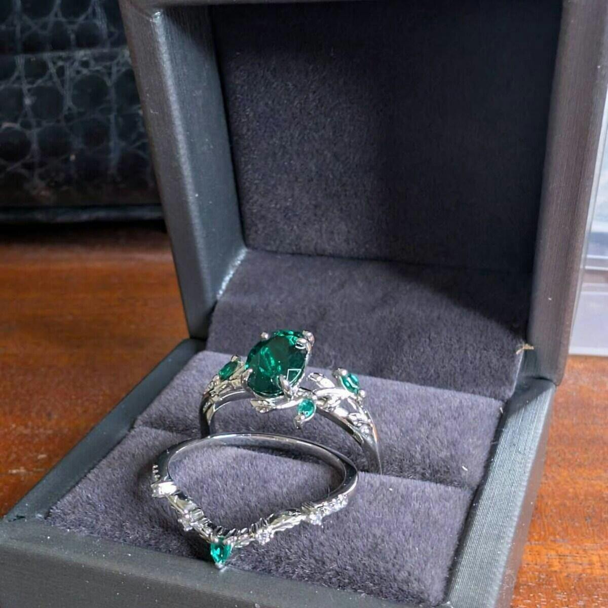 - Wedding Band Stone: lab emerald and moissanites