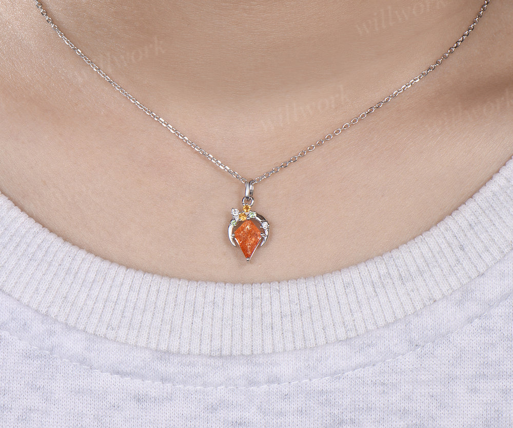 Kite cut sunstone necklace unique moon star citrine peridot accent pendant necklace for women