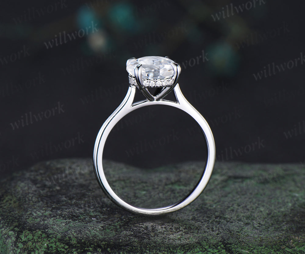 3ct round cut moissanite engagement ring hidden halo diamond promise ring women 14k white gold