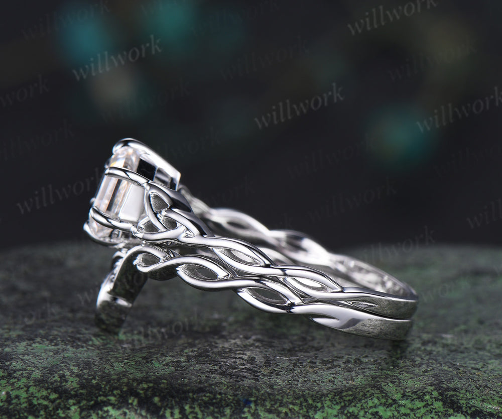 Hexagon cut moissanite ring vintage infinity Celtic knot engagement ring set solid 14k white gold promise ring women