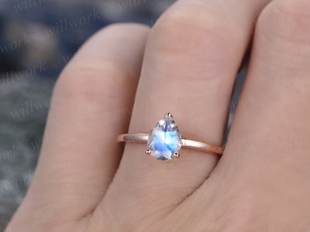 Natural moonstone ring gold vintage solitaire ring pear moonstone engagement ring 14k/18k rose gold June birthstone ring anniversary gift