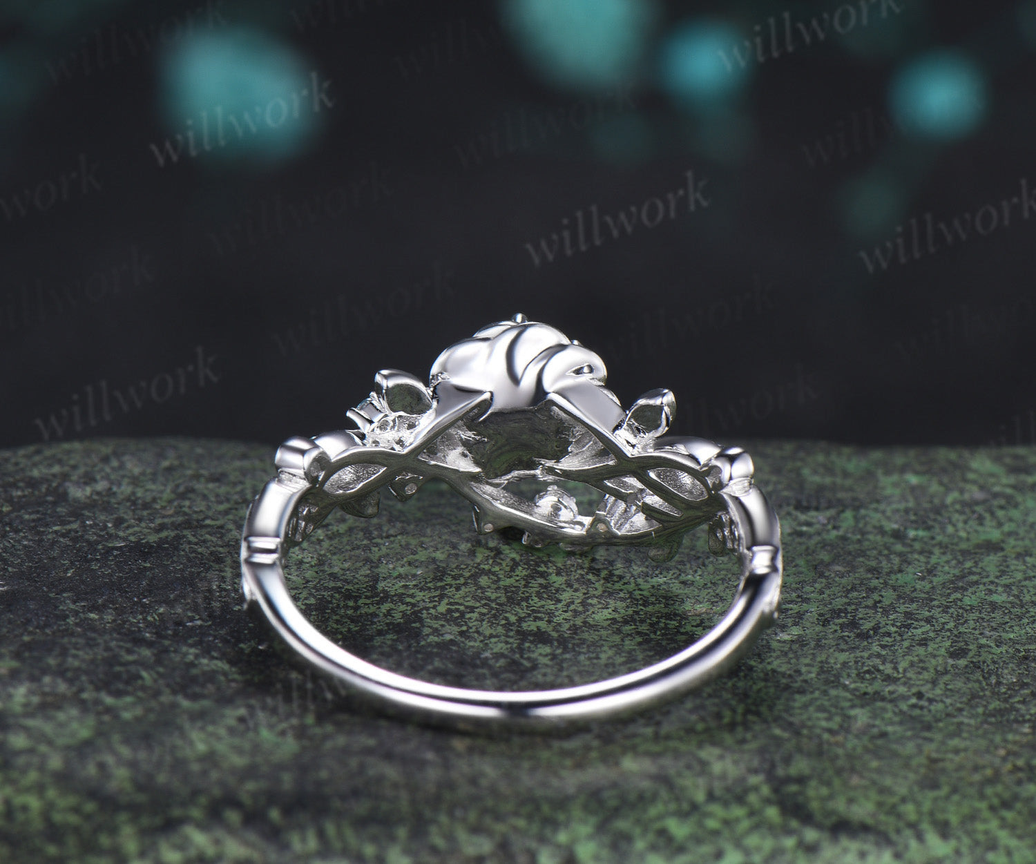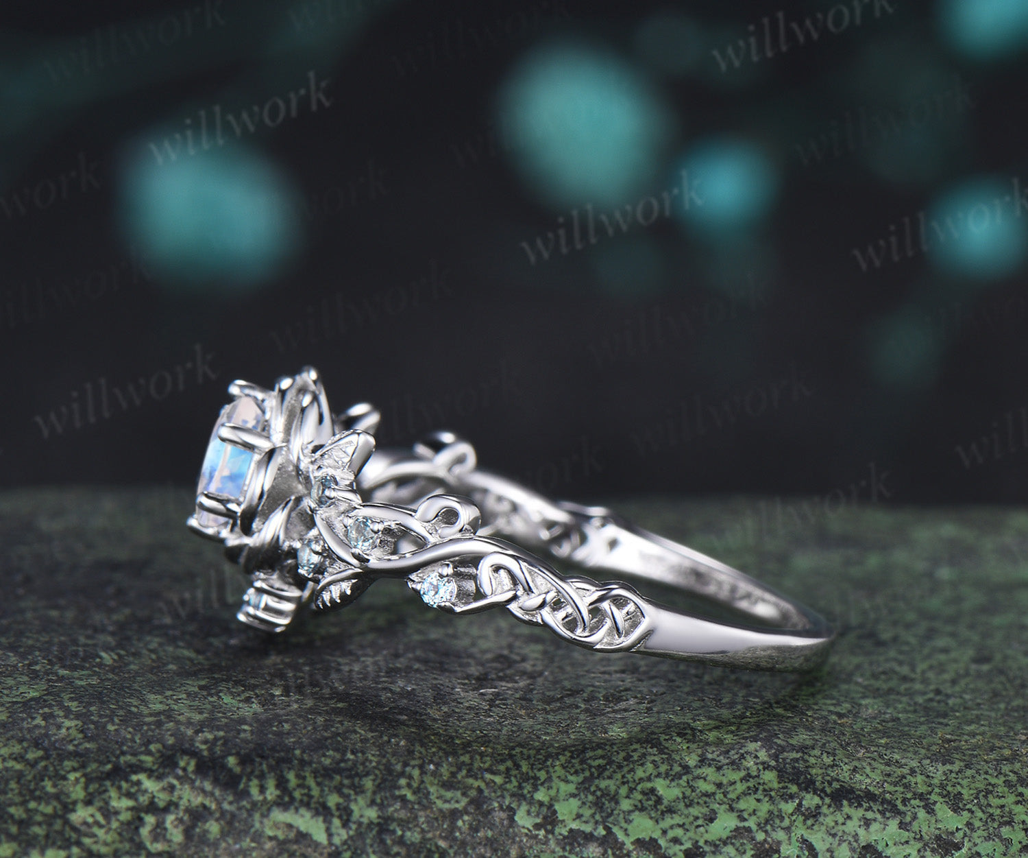 Round moonstone floral leaf ring infinity twisted alexandrite leaf engagement ring nature inspired bridal ring