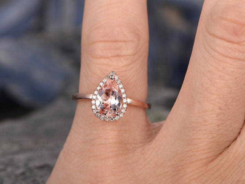 Morganite engagement ring handmade solid 14k rose gold ring solitaire stacking 5x7mm tear drop real diamond halo ring wedding promise ring Morganite engagement ring handmade solid 14k rose gold ring solitaire stacking 5x7mm tear drop real diamond halo ring wedding promise ring $1,145.00