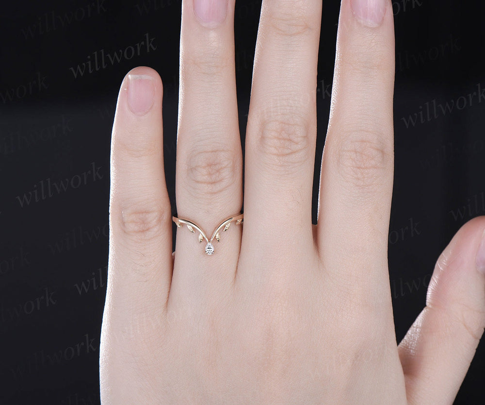 Nature inspired leaf pear diamond wedding band 14k yellow gold art deco vintage moissanite wedding ring band anniversary ring women gift