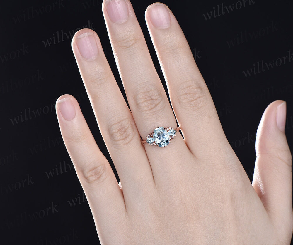 Vintage 2ct oval Aquamarine engagement ring pear Aquamarine ring cluster diamond ring solid 14k rose gold gemstone ring women fine jewelry