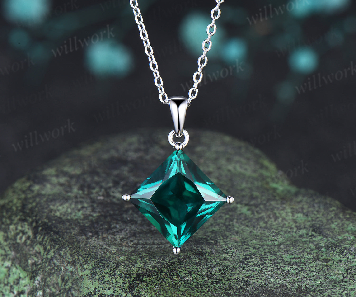 6ct princess cut green emerald necklace solitaire green gemstone pendant necklace May birthstone gift 6ct princess cut green emerald necklace solitaire green gemstone pendant necklace May birthstone gift $339.00