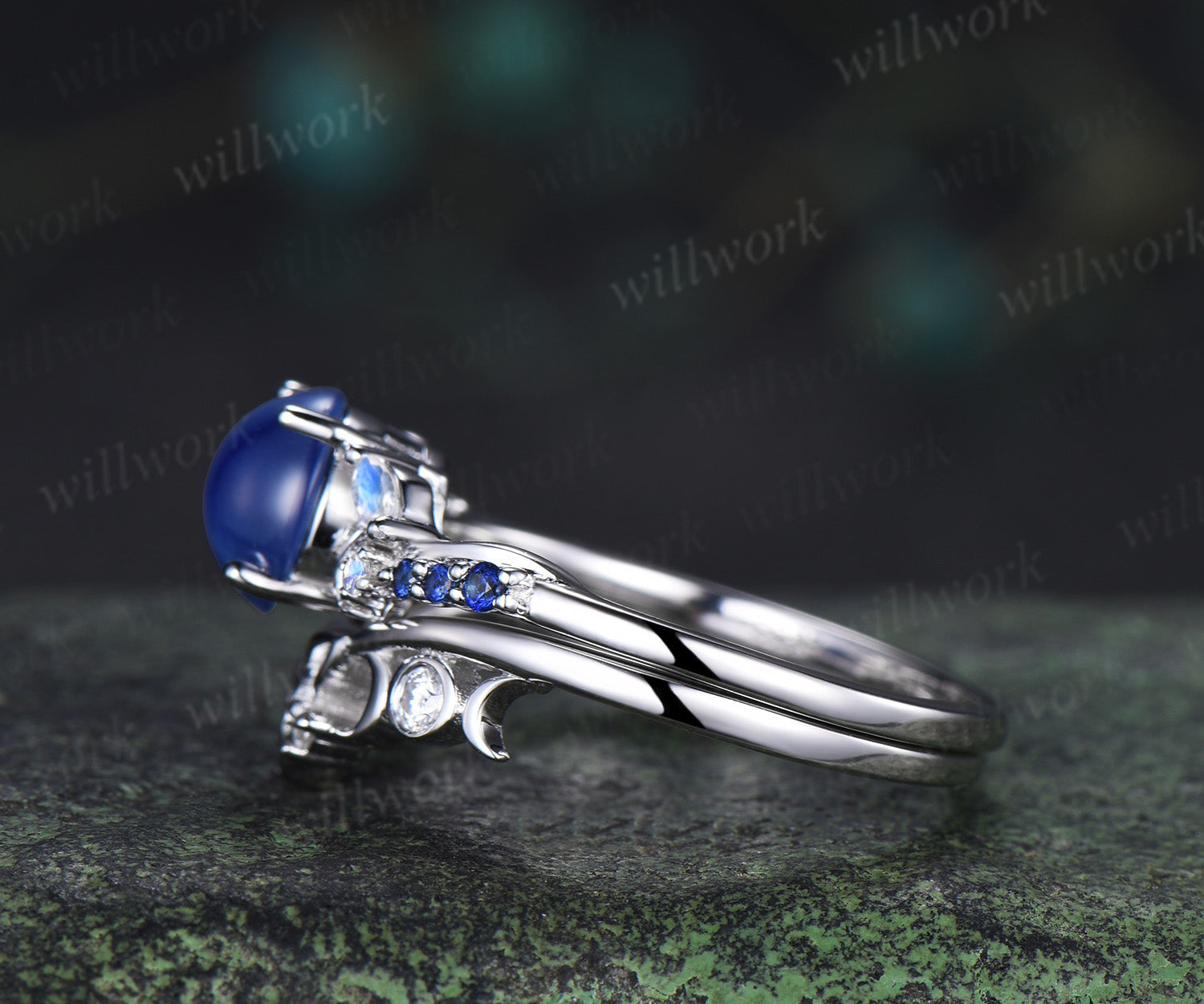 7mm round star sapphire engagement ring set moon star moonstone sapphire ring celtic knot wedding band bridal set