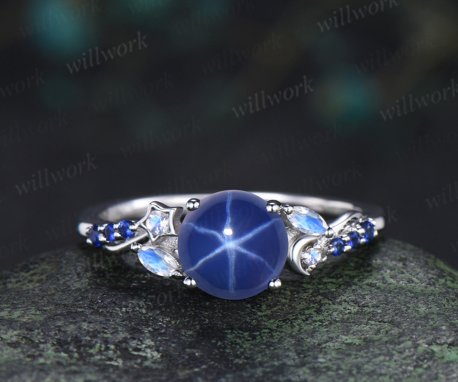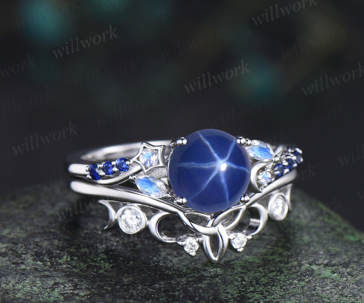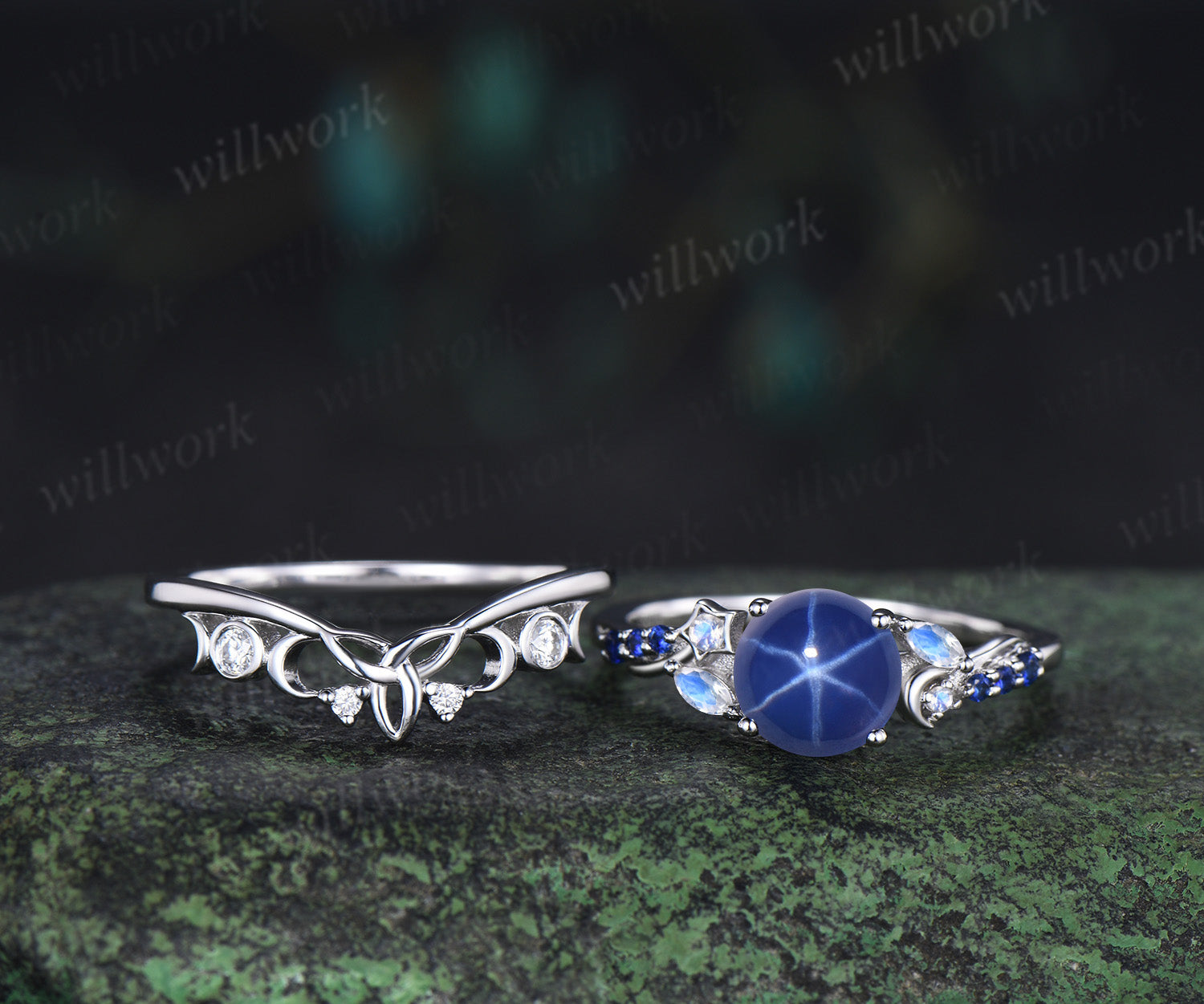 7mm round star sapphire engagement ring set moon star moonstone sapphire ring celtic knot wedding band bridal set 7mm round star sapphire engagement ring set moon star moonstone sapphire ring celtic knot wedding band bridal set $832.00