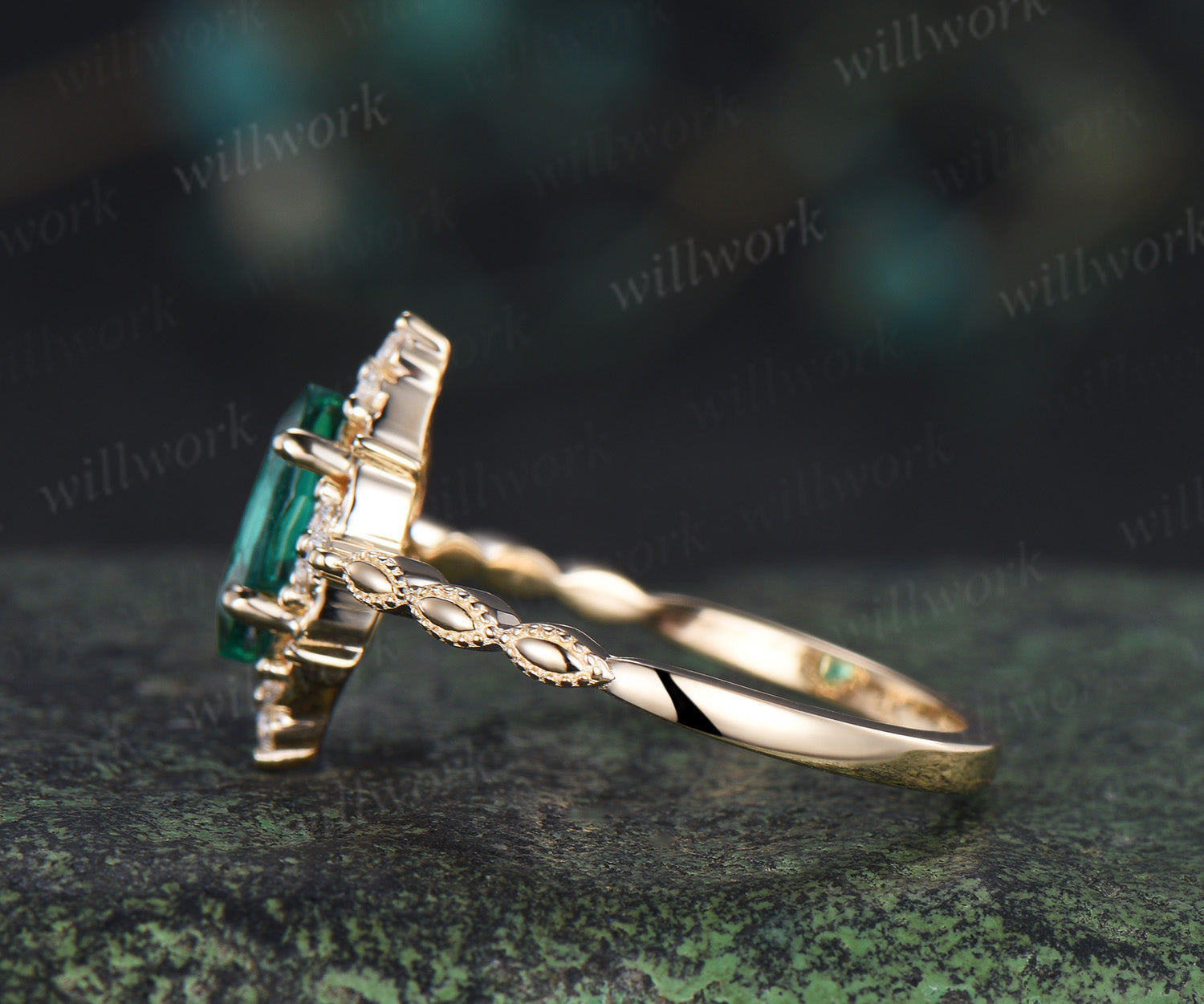 ***This vintage-inspired marquise emerald engagement ring radiates timeless elegance. The vivid green emerald is encircled by sparkling diamond clusters, creating a captivating balance of luxury and romance. Perfect as an engagement, promise, or anniversary ring for someone truly special.***- Metal: Solid gold(10K/14K/18K white/yellow/rose gold),925 sterling silver,platinum available