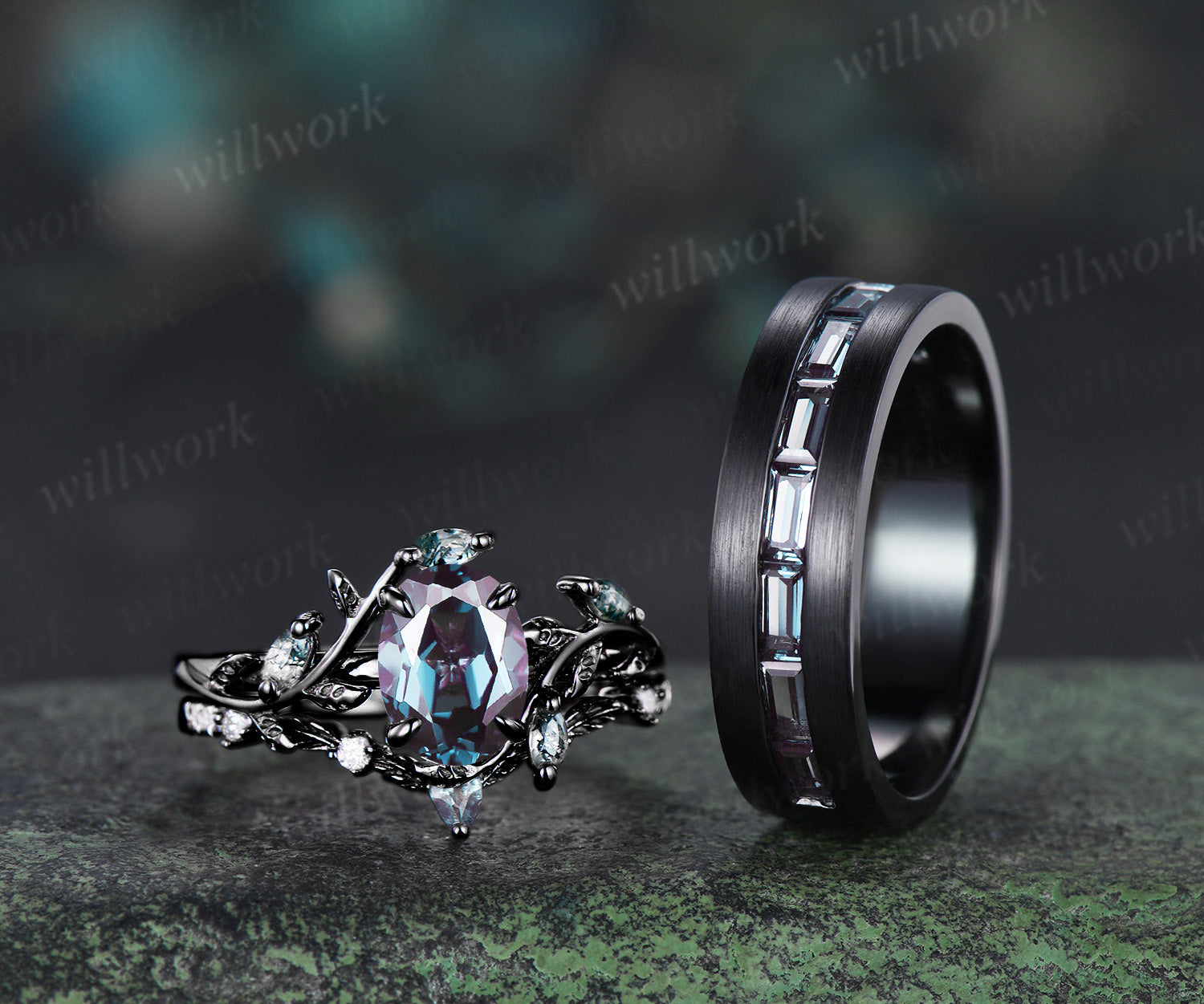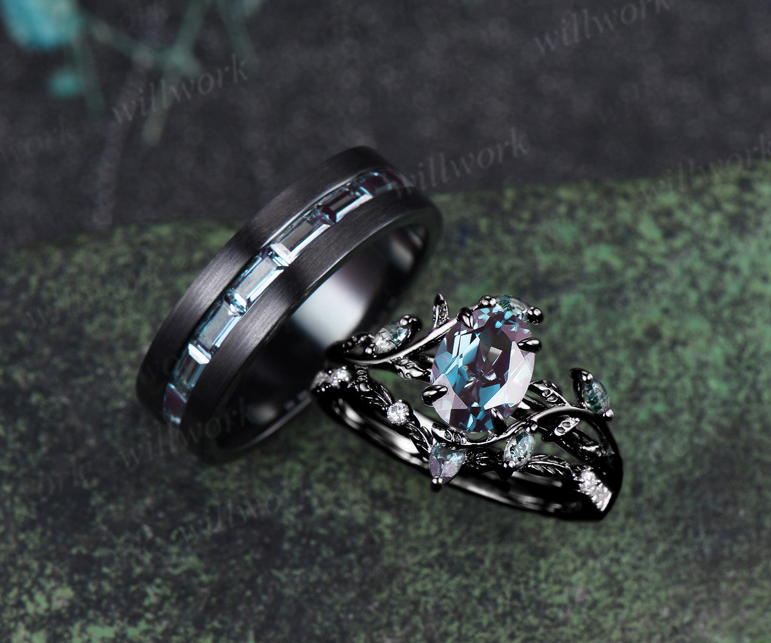 Oval Cut Alexandrite Twig Leaf Ring Set & Baguette Alexandrite Brushed Finish Men Half Eternity Wedding Ring Couple Ring Set Oval Cut Alexandrite Twig Leaf Ring Set & Baguette Alexandrite Brushed Finish Men Half Eternity Wedding Ring Couple Ring Set $356.00