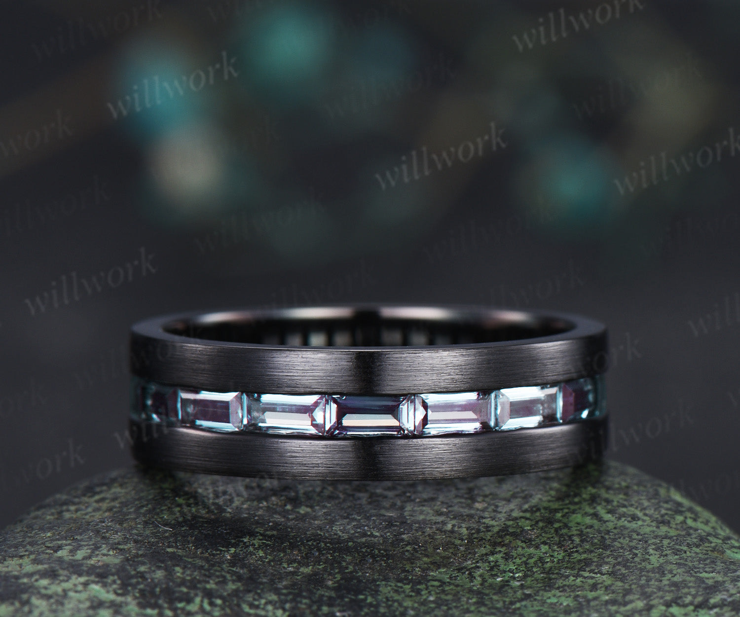 -Wedding band stones: natural moss agate+moissanites