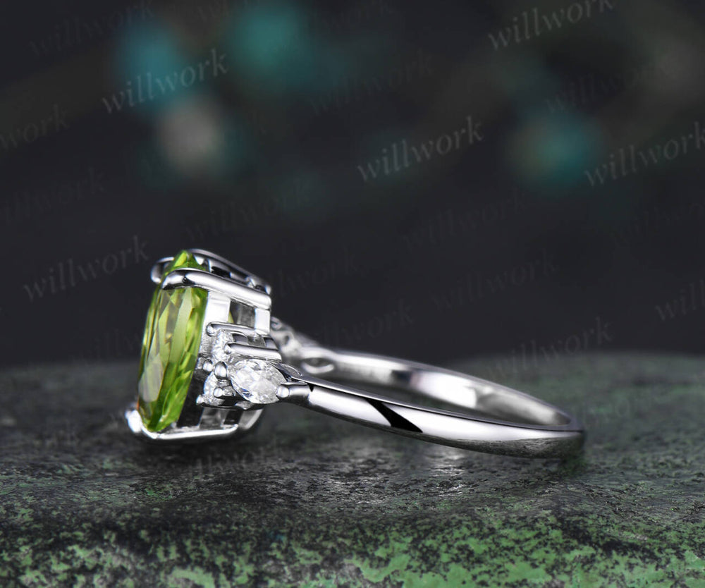 Unique pearcut citrine engagement ring teardrop peridot Toi et Moi ring dainty anniversary ring women