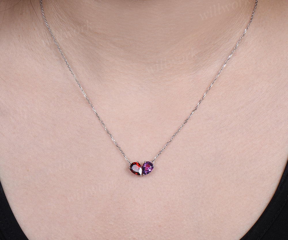 Pear garnet amethyst pendant necklace heart shape pendant Toi et Moi necklace minimalist birthstone necklace unique gifts